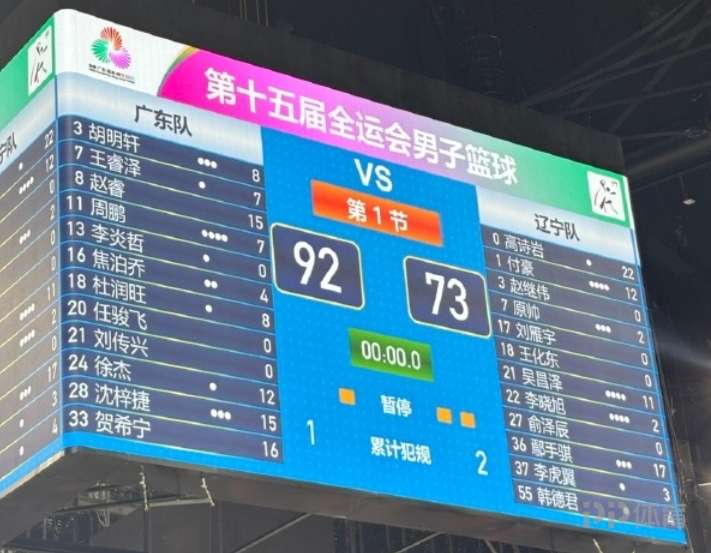 全運(yùn)男籃半決賽,廣東全運(yùn)男籃對(duì)陣遼寧全運(yùn)男籃。比賽開始,雙方開場(chǎng)勢(shì)均力敵,比分交替領(lǐng)先,隨后趙繼偉傷退,趙睿連中三分引領(lǐng)球隊(duì)16-2的攻擊波取得兩位數(shù)領(lǐng)先,次節(jié)廣東命中率下降,高詩巖和鄢手騏先后命中三分帶隊(duì)追趕,徐杰三分穩(wěn)住局勢(shì),半場(chǎng)戰(zhàn)罷廣東全運(yùn)男籃45-37領(lǐng)先遼寧全運(yùn)男籃。易邊再戰(zhàn),遼寧占得先機(jī)打出6-0追到只差2分,周鵬三分穩(wěn)住局勢(shì),廣東全運(yùn)男籃持續(xù)發(fā)力打出10-0的攻擊波重獲兩位數(shù)優(yōu)勢(shì),末節(jié)廣東全運(yùn)男籃越戰(zhàn)越勇,一舉將分差拉開到20分以上,比賽失去懸念。最終,廣東全運(yùn)男籃92-73大勝遼寧全運(yùn)男籃,挺進(jìn)決賽。