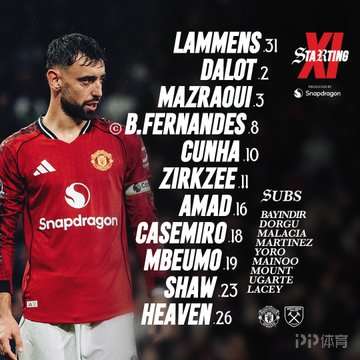 曼聯(lián)vs西漢姆聯(lián):庫(kù)尼亞、海文首發(fā),齊爾克澤出戰(zhàn),利馬替補(bǔ)