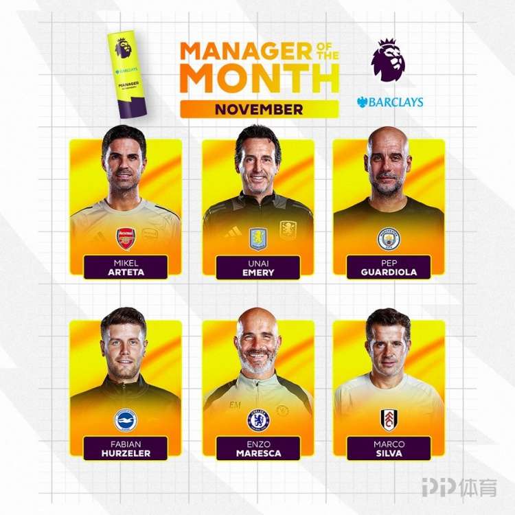 英超11月最佳主帥候選:阿爾特塔、瓜迪奧拉、馬雷斯卡在列
