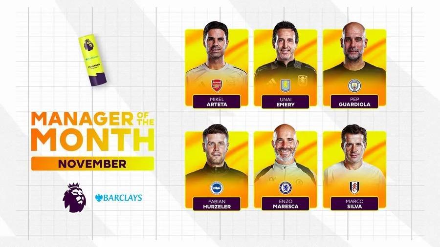 英超11月最佳主帥候選:馬雷斯卡、瓜帥、塔帥、埃梅里在列