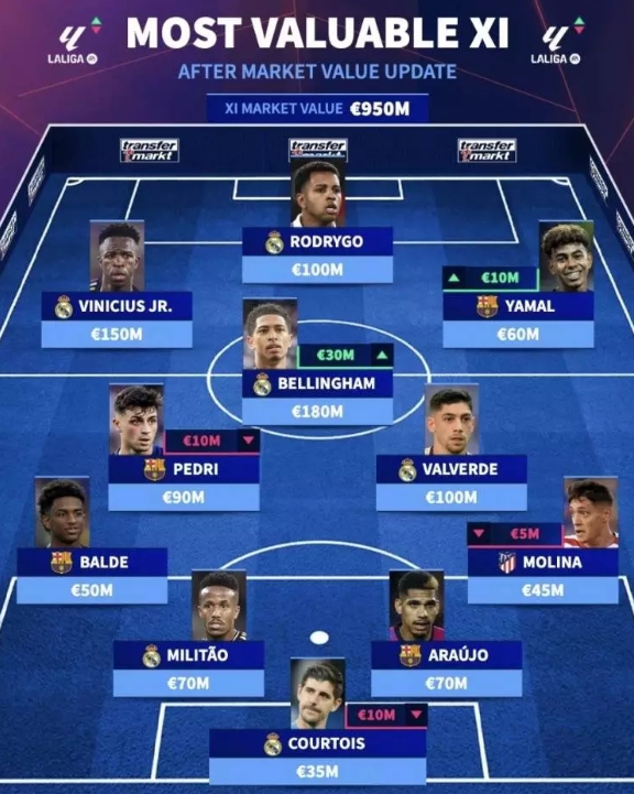 近期,西甲球員身價(jià)更新,一份最新的11人陣容榜單也應(yīng)運(yùn)而生。這支陣容以億萬(wàn)先生為主,其中不乏皇馬的4位明星球員,他們的身價(jià)令人瞠目結(jié)舌。本文將詳細(xì)解讀這支西甲最貴11人陣容,揭示背后的身價(jià)背書和球