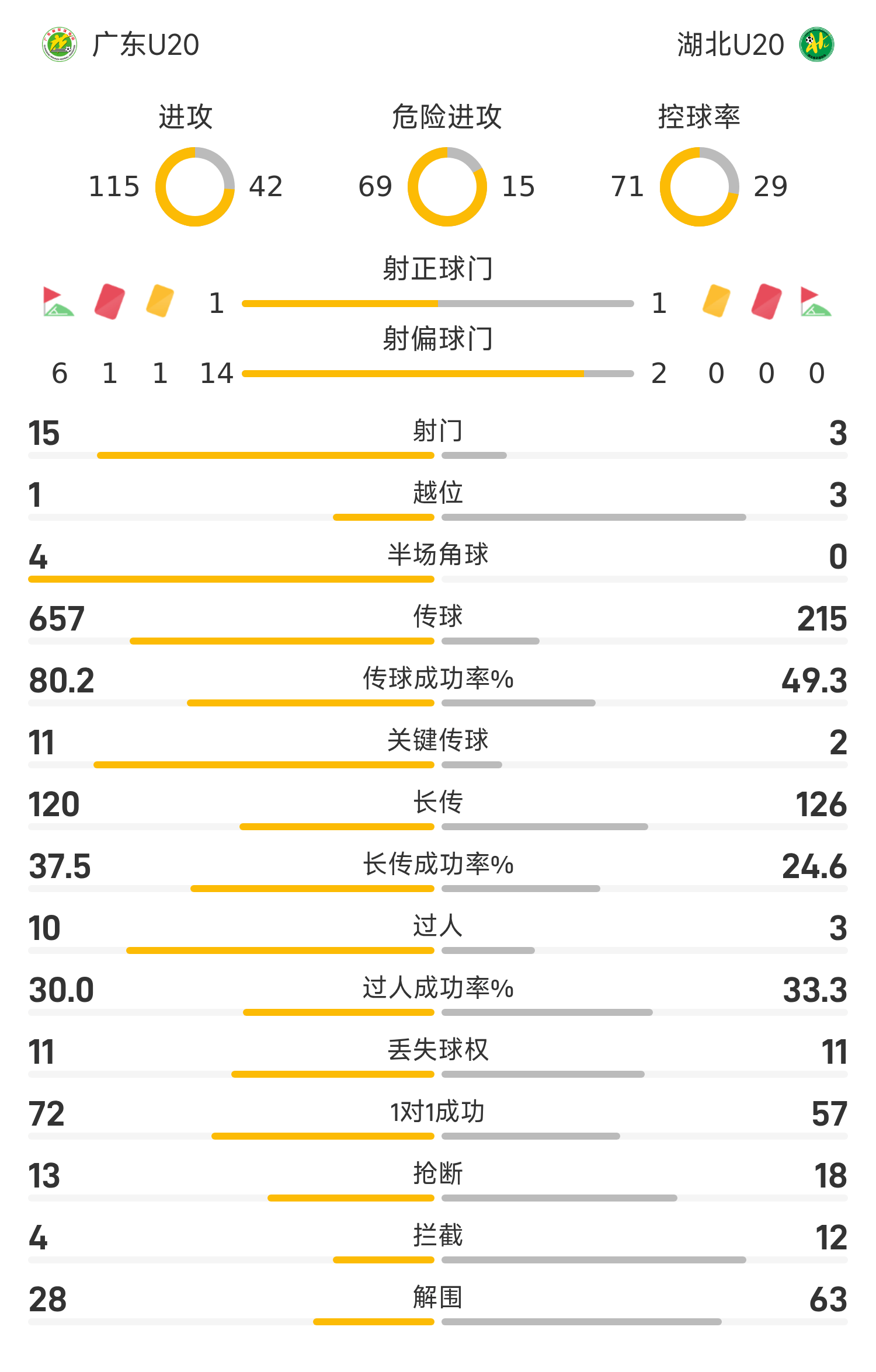 湖北U20首發(fā)陣容:1-姚浩洋、34-王康(90’25-于景澄)、11-韋所為(46’19-韋子弦)、5-余田樂、2-孫康博、16-楊希、6-夏子豪、10-范緒林(96’8-高速)、18-熊繼政、15-姜利勛(82’14-楊博雯)、13-黃開俊(67’21-王智誠)
