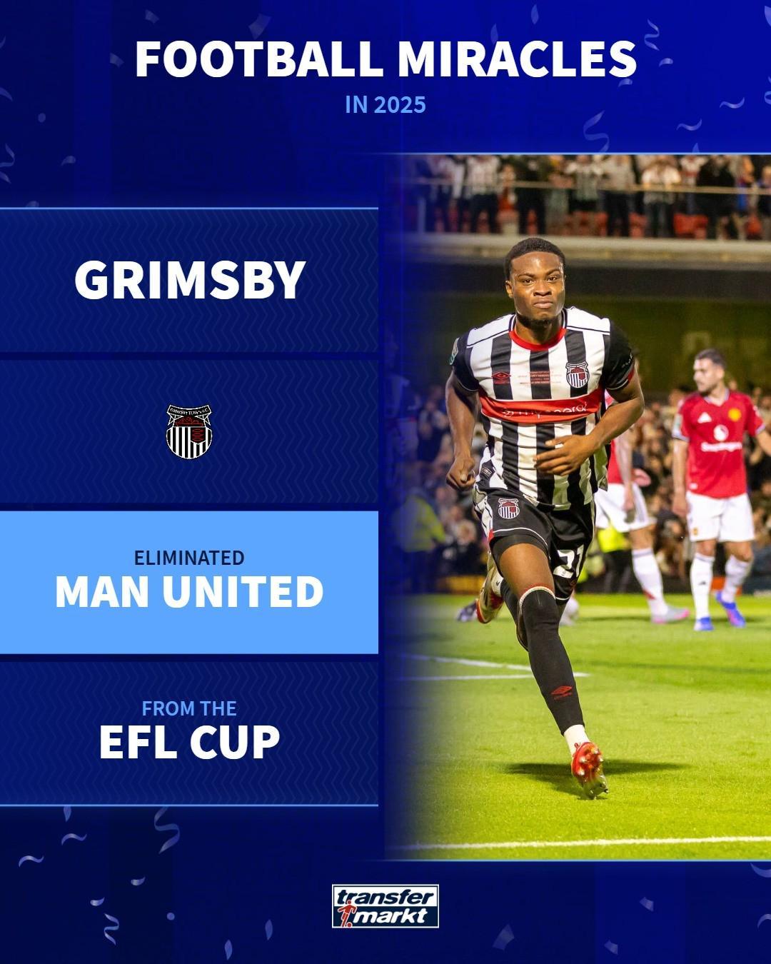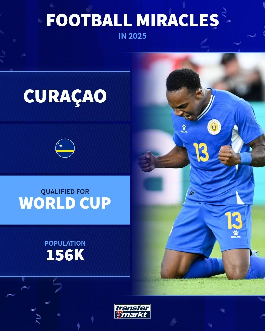 12月26日,德國轉會市場網(wǎng)發(fā)布盤點內(nèi)容,聚焦2025年度足壇誕生的八大“奇跡”事件。這些事件均以較低概率上演,其中既包括僅15.6萬人口的庫拉索歷史性打入世界杯的勵志時刻,也有格林斯比爆冷擊敗曼聯(lián)等令人意外的冷門。