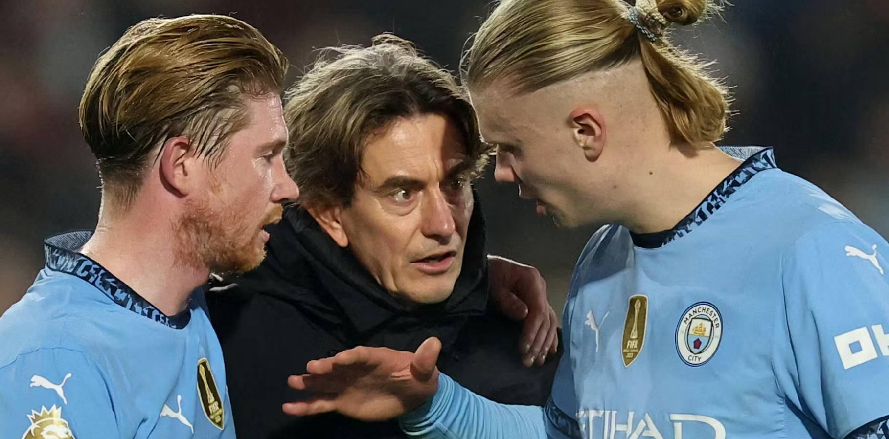 這里有一張照片:您站在現(xiàn)代足球界的兩位巨星之間——哈蘭德和德布勞內(nèi)