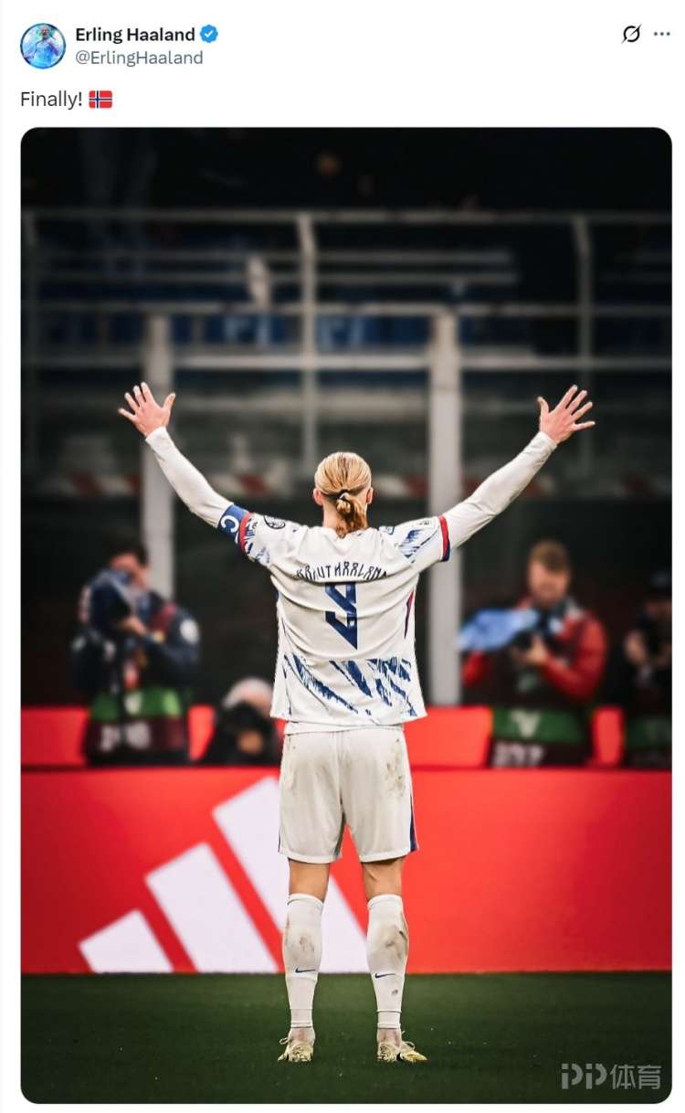哈蘭德更新社媒動態(tài),曬出自己慶祝的背影照片,配文:“終于!”