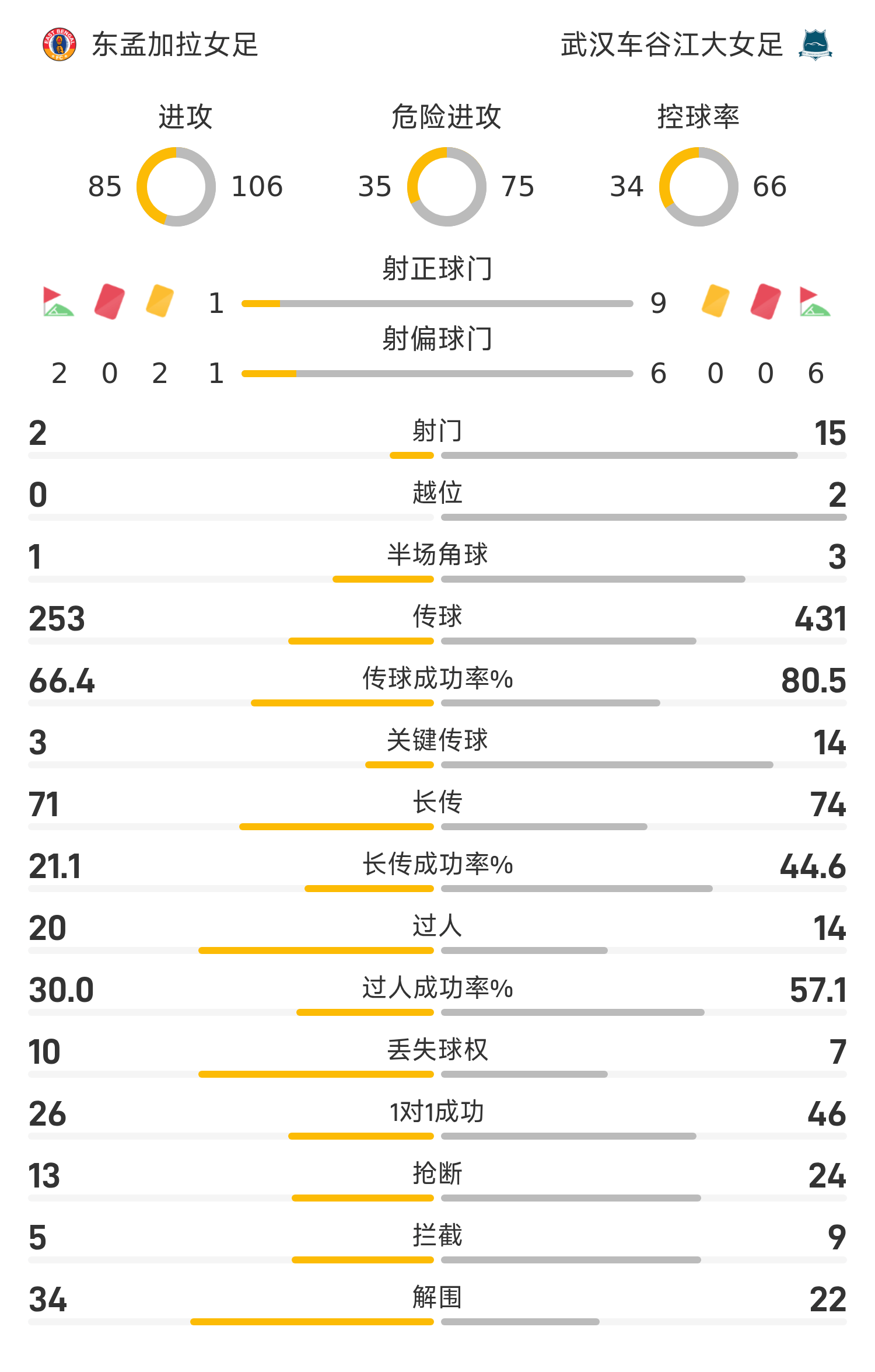 武漢車谷江大女足首發(fā)陣容:29-丁旋、15-劉艷秋、18-馬君、28-宋菲(46’12-唐涵)、26-姜晨璟、13-徐倩倩、20-金蕙利、7-王霜(85’30-汪倩倩)、10-姚偉、27-鄧夢(mèng)曄(74’21-代陳穎)、19-奧烏蘇(85’36-趙靜宜)
