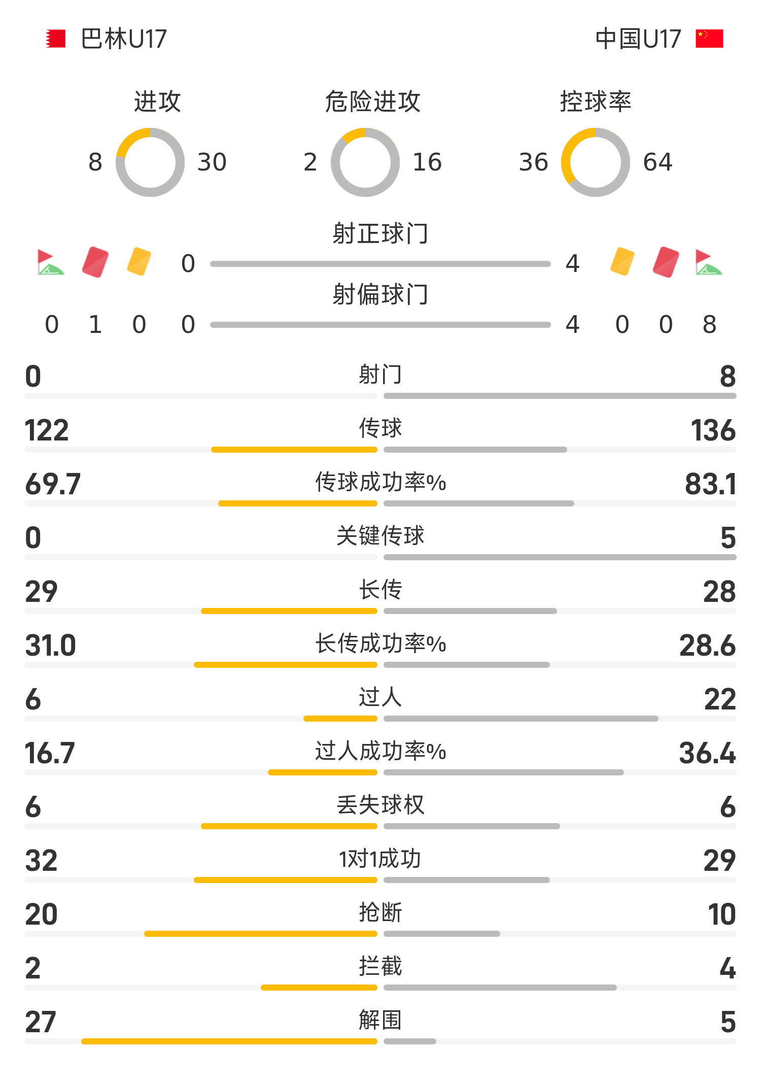 雷速體育11月22日訊 25/26賽季U17亞洲杯預(yù)選賽A組第1輪,巴林U17迎戰(zhàn)中國U17。半場(chǎng)戰(zhàn)罷,中國U17暫3-0領(lǐng)先巴林U17,帥惟浩上演梅開二度,萬項(xiàng)造點(diǎn)并主罰命中,哈賈染紅。