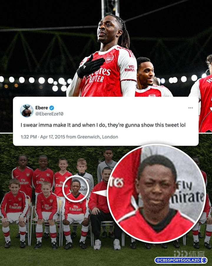 埃澤8歲就進(jìn)入阿森納青訓(xùn)體系,13歲離開(kāi)槍手。如今重回母隊(duì)的他,在個(gè)人首次北倫敦德比中就用一記帽子戲法兌現(xiàn)了自己當(dāng)初許下的諾言。