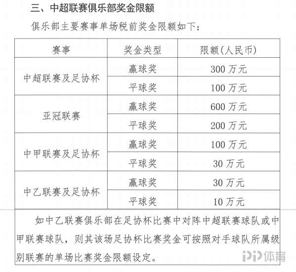 今日中足聯(lián)印發(fā)三級聯(lián)賽財務指標,其中包含俱樂部獎金限額。中超球隊聯(lián)賽單場贏球獎金不得超過300萬元。