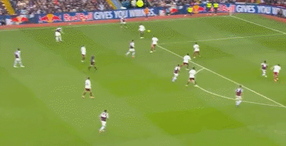 第36分鐘,?!ね欣姿菇麉^(qū)外左側(cè)斜傳禁區(qū),前點(diǎn)廷伯蹭了一下,阿森納整條后防線都沒能將球解圍,皮球來到后點(diǎn),卡什插上凌空抽射!打穿拉亞襠下破門!維拉1-0領(lǐng)先阿森納
