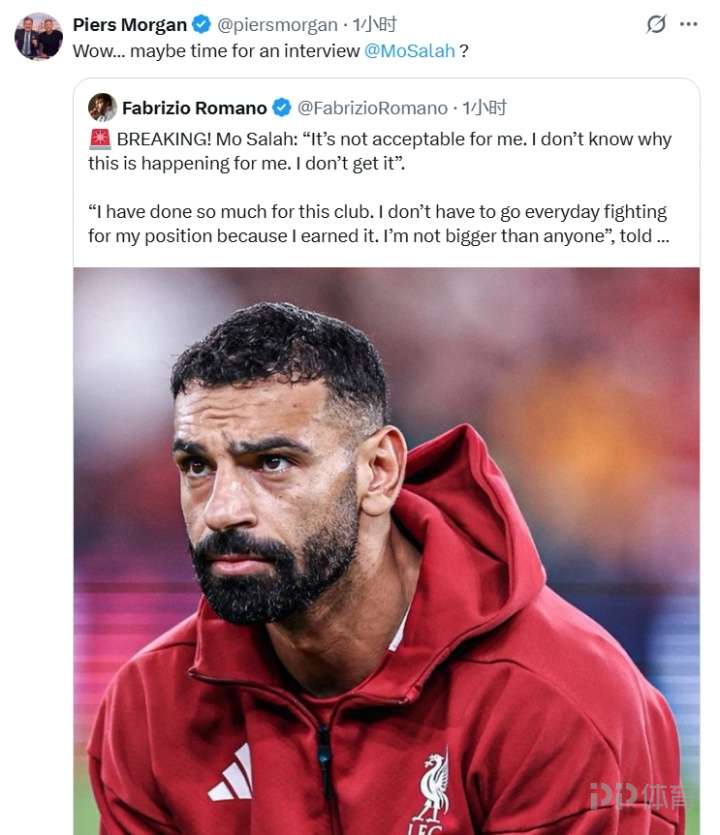 知名主持人摩根轉(zhuǎn)發(fā)了這則內(nèi)容,并寫道:“哇....或許是時候來個采訪了@薩拉赫?!?/p> 責(zé)任編輯: 體育24小時熱點