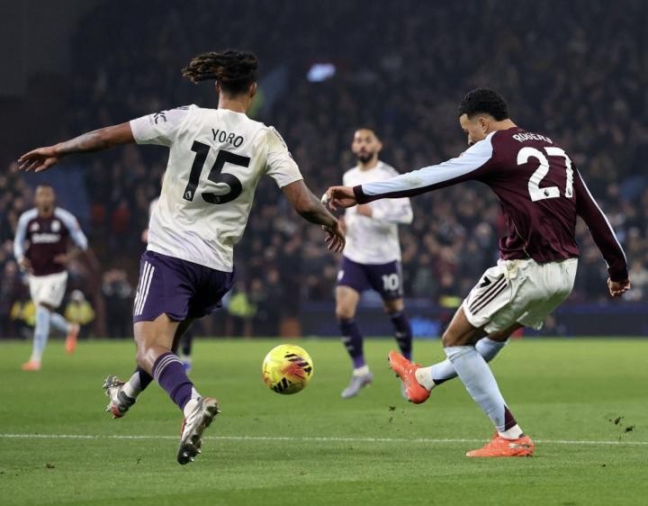 第45分鐘,維拉在中場(chǎng)完成搶斷,由來(lái)到中路的麥金頂住后衛(wèi)線,聯(lián)系到羅杰斯,然后在一對(duì)一中擊倒了曼聯(lián):