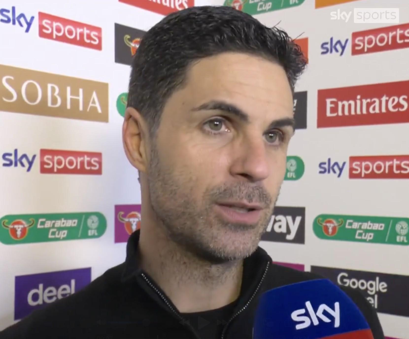 英聯(lián)杯1/4決賽,阿森納通過(guò)點(diǎn)球大戰(zhàn)淘汰水晶宮,賽后,槍手主帥阿爾特塔接受了天空體育的采訪。
